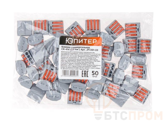Сечение подключаемого проводника: 0,1 - 2,5 мм2 (для одножильных), 0,08 - 4 мм2 (для многожильных);