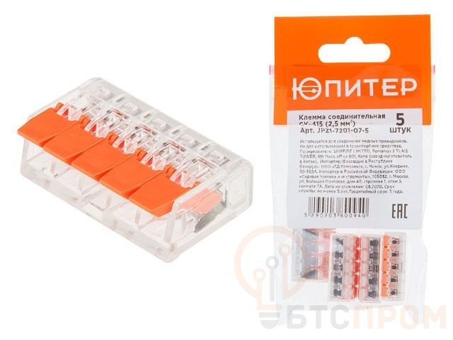 Клеммы соединительные ЮПИТЕР обеспечат быстрый монтаж и демонтаж проводников без дополнительных инструментов благодаря рычажку.
