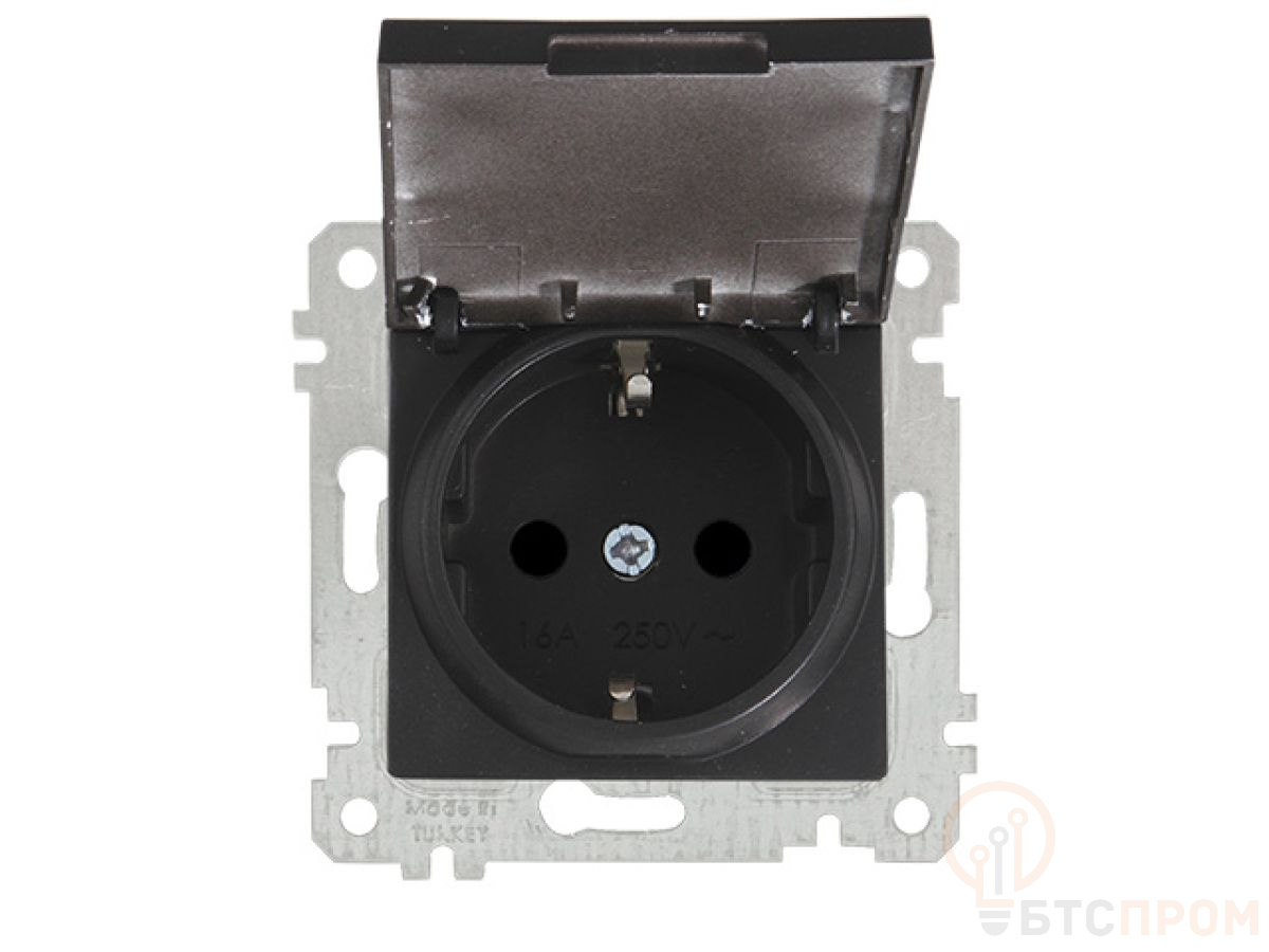 Розетка 1-ая (скрытая, без рамки, с/з, с крышкой) черная, RITA, MUTLUSAN (16 A, 250 V, IP 20) 2200 610 0284