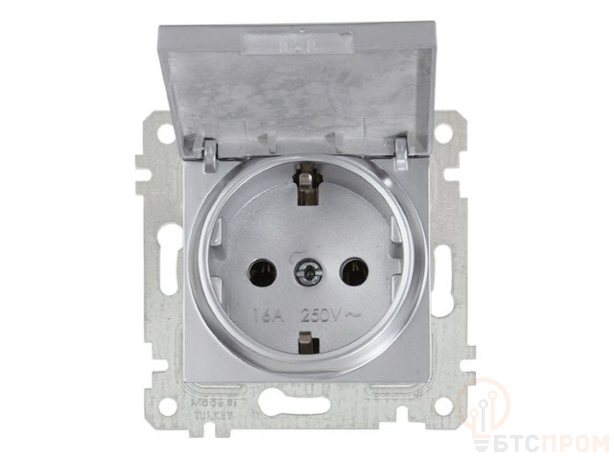 Розетка 1-ая (скрытая, без рамки, с/з, с крышкой) серебро, RITA, MUTLUSAN (16 A, 250 V, IP 20) 2200 610 0282