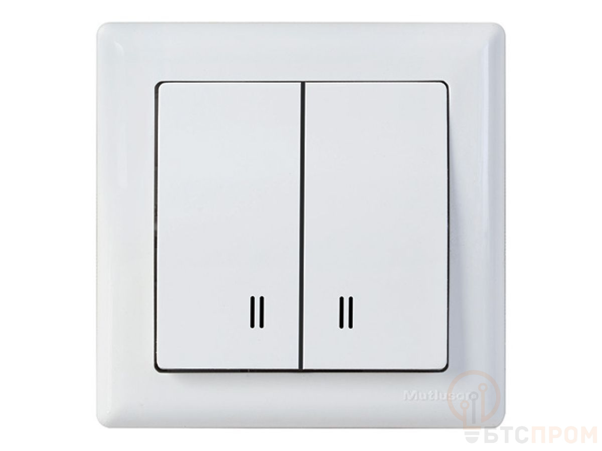 Выключатель 2-клав. (с подсветкой, скрытый, винт. зажим) белый, DARIA, MUTLUSAN (10 A, 250 V, IP 20) 2120 426 0201