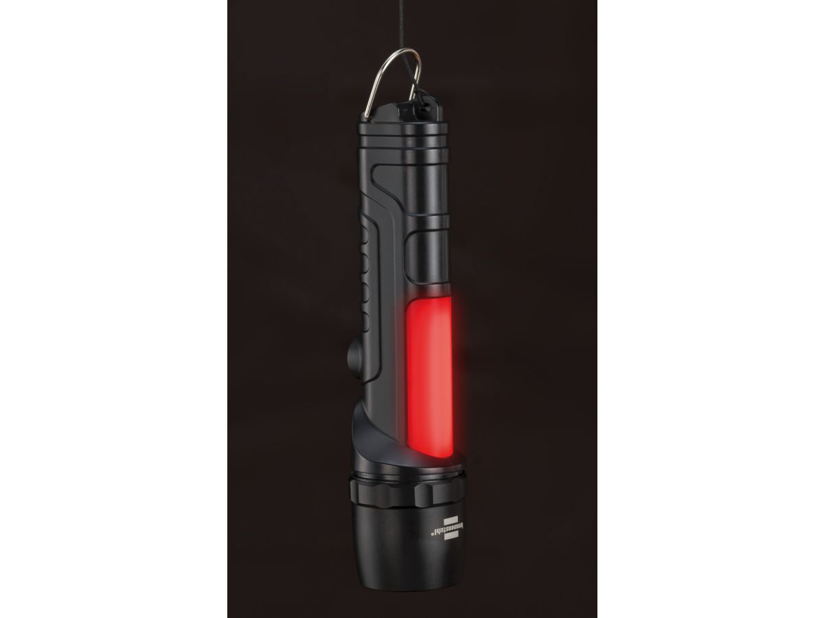 Прочный алюминиевый корпус с наручным ремешком, в который встроен магнит и поворотный крючок.