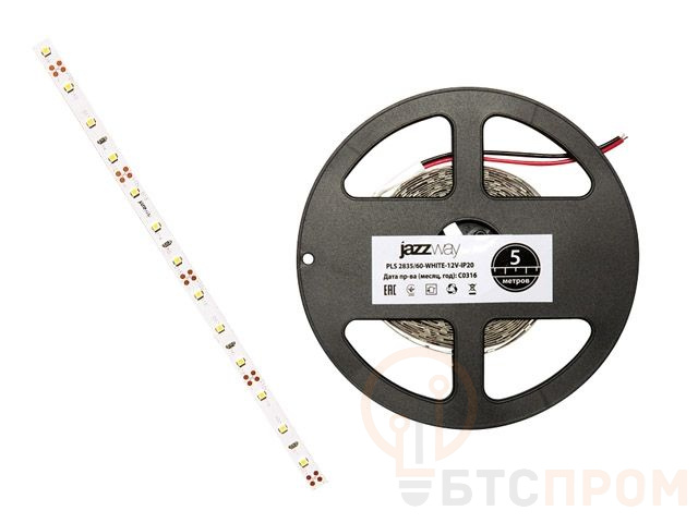 Лента светодиодная PLS 2835/60 (6.0 Вт/м, 480 Лм/м, IP20, 12В (5 м в уп.) зеленая JAZZWAY (60 диод/м, зеленый свет, 8 мм) 5000322