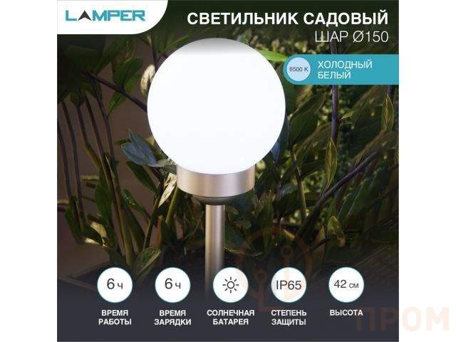 Светильник садовый на солнечной батарее "Шар" d150 6500К LAMPER (со встроенным акк., солн. панелью, датчиком освещенности) 602-1003