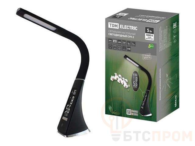 Светильник светодиодный настольный СНЧ-2, сенсор-диммер, 5 Вт, 100-240 В, 5000 К, черный TDM (часы. календарь, термометр, USB) SQ0337-0099