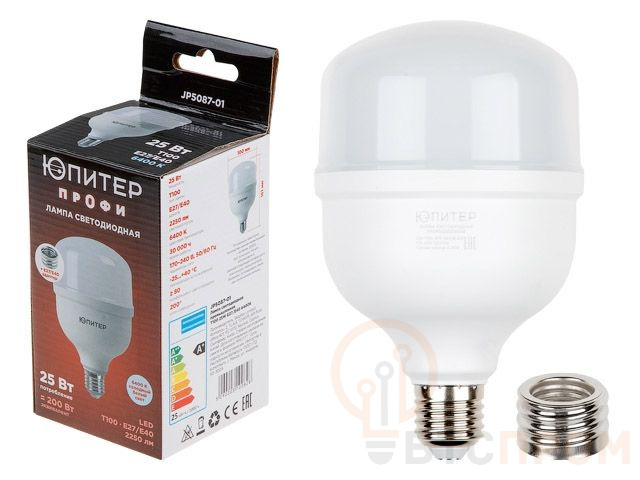Лампа светодиодная промышл. T100 25 Вт 170-240В E27/E40 6400К ЮПИТЕР (200 Вт аналог лампы накал., 2250Лм, холодный белый свет) JP5087-01