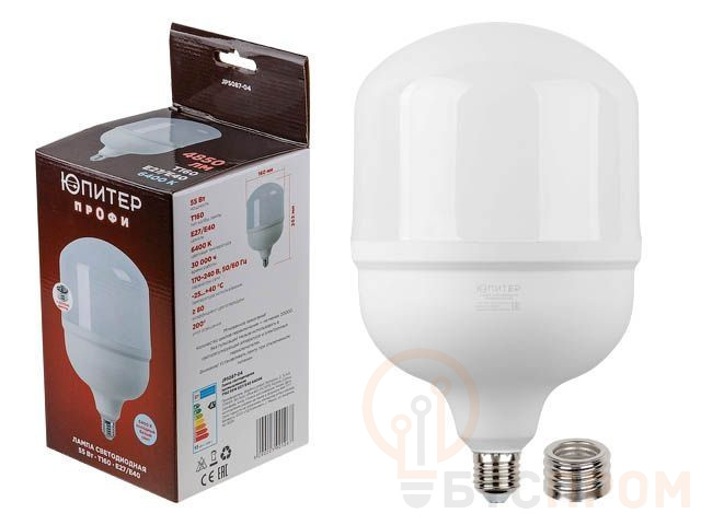 Лампа светодиодная промышл. T160 55 Вт 170-240В E27/E40 6400К ЮПИТЕР (500 Вт аналог лампы накал., 4850Лм, холодный белый свет) JP5087-04