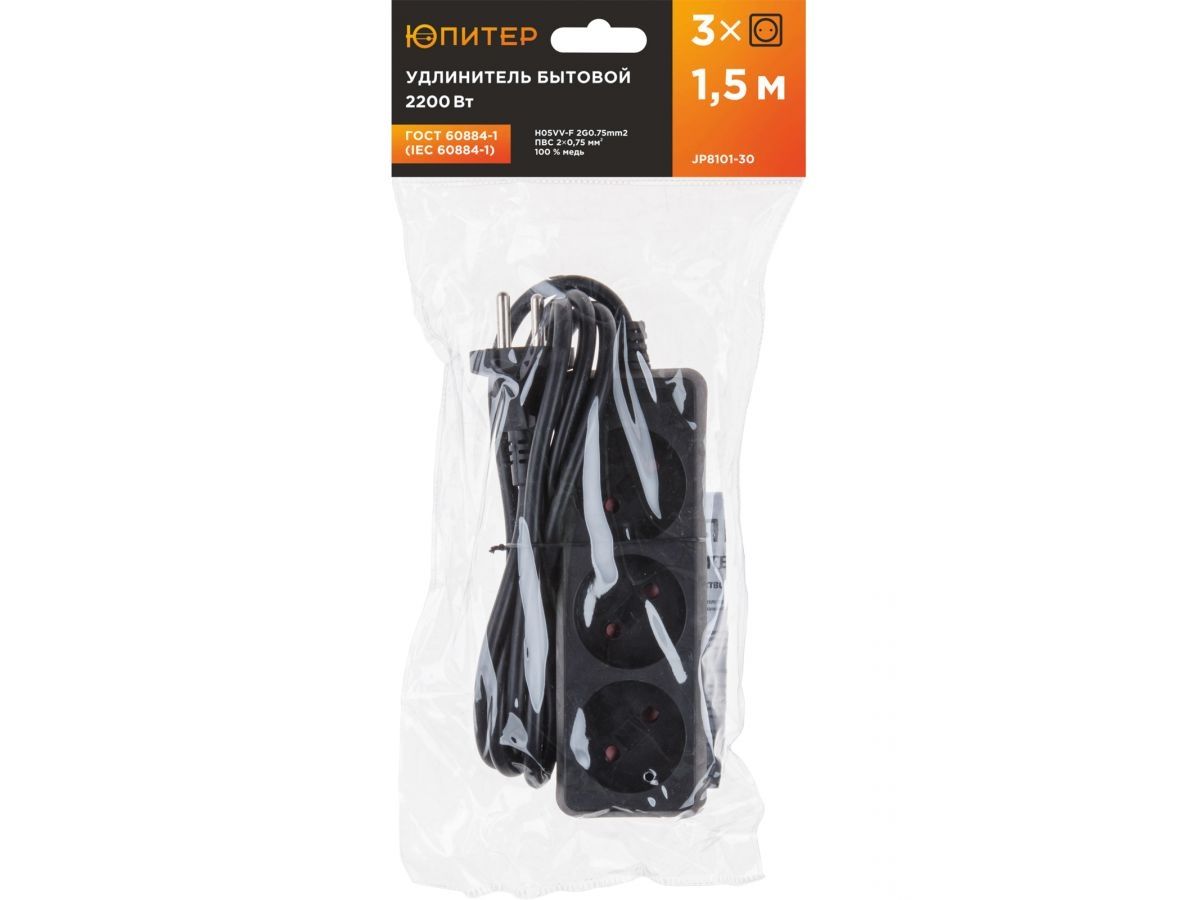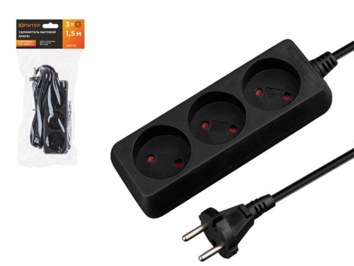 Удлинитель ЮПИТЕР изготовлен только из качественных материалов в соответствии с ГОСТ60884-1 и предназначен для подключения бытовых электрических приборов к электрической сети переменного тока внутри помещения.
