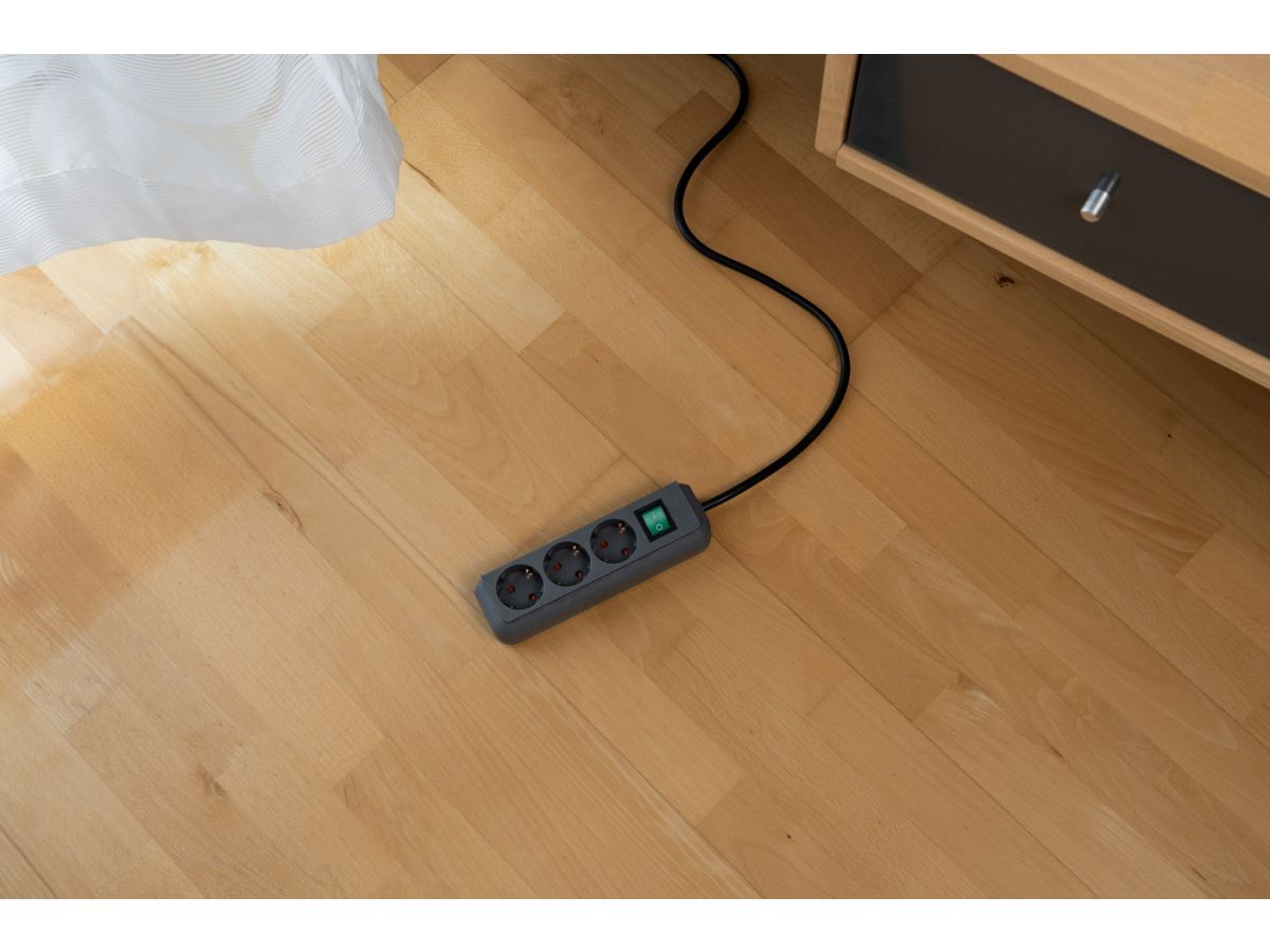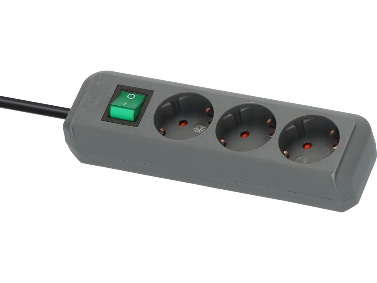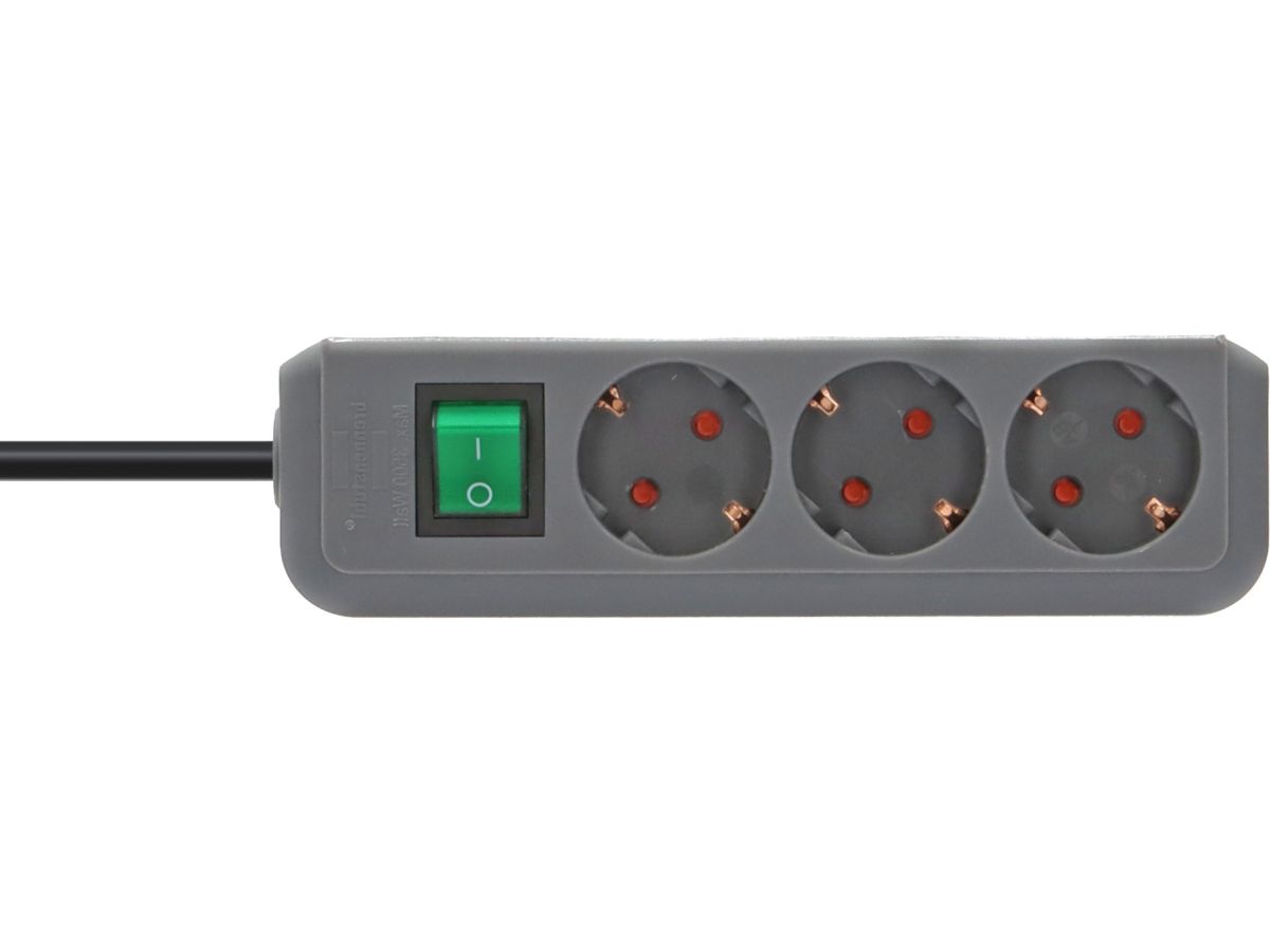 Удлинитель 1.5м (3 роз., 3.3кВт, с/з, выкл., ПВС) серебристо-серый Brennenstuhl Eco-Line (провод 3х1,5мм2, сила тока 16А, с/з - с заземляющим контактом) 1152340015