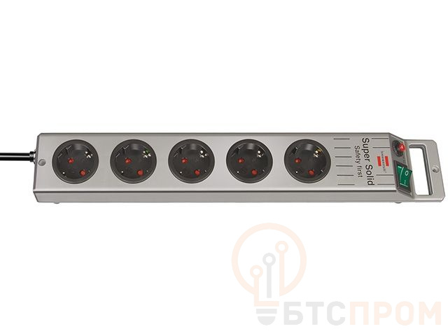 Удлинитель 2.5м (5 роз., 3.3кВт, с/з, выкл., ПВС) Brennenstuhl Super-Solid-Line (серебристый, провод 3х1,5мм2, сила тока 16А, с/з - с заземляющим контактом) 1153340115