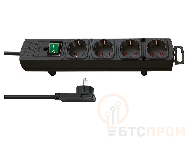 Удлинитель 2м (4 роз., 3.3кВт, с/з, выкл., ПВС) черный Brennenstuhl Comfort-Line (провод 3х1,5мм2, сила тока 16А, с/з - с заземляющим контактом) 1153100100
