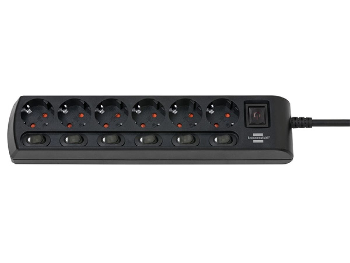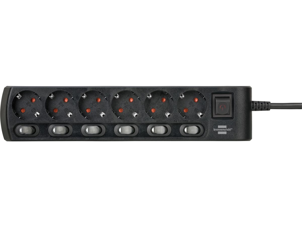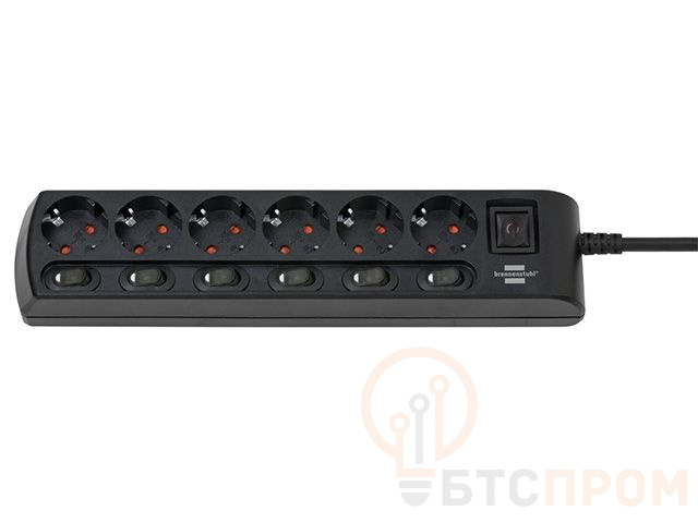 Удлинитель 2м (6 роз., 3.3кВт, с/з, 6+1 выкл., ПВС) черный Brennenstuhl Comfort-Line (провод 3х1,5мм2, сила тока 16А, с/з - с заземляющим контактом) 1153110116