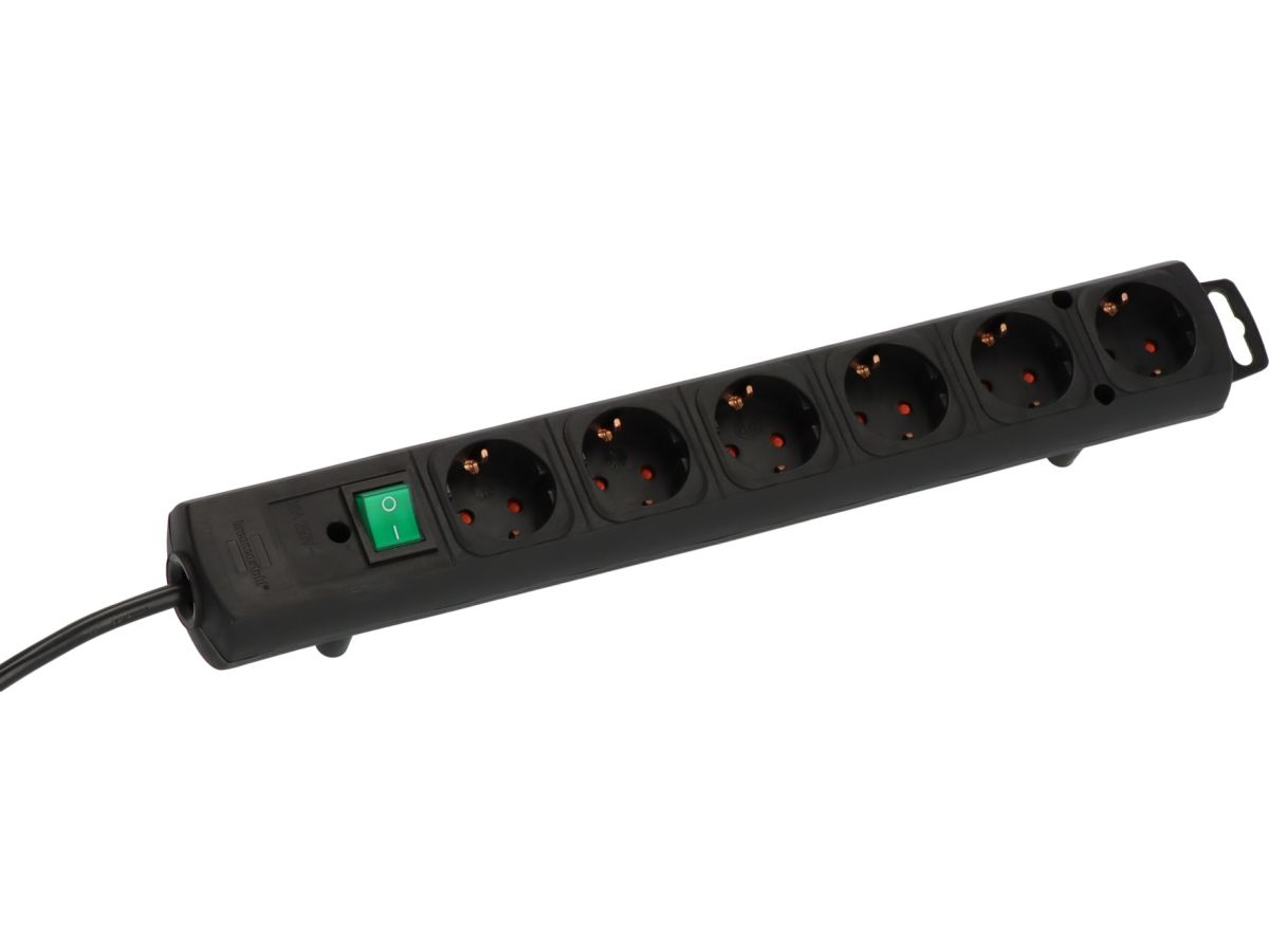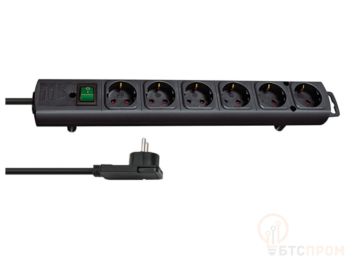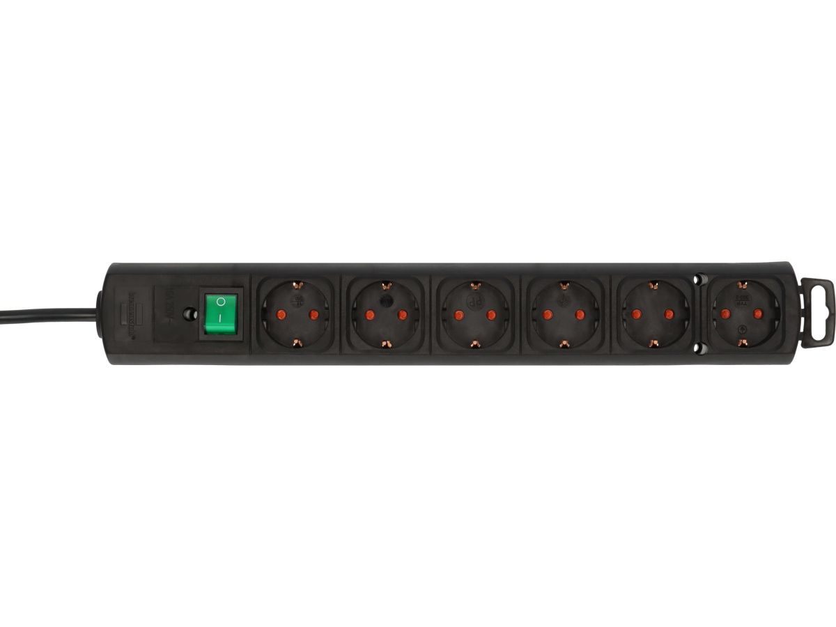 Удлинитель 2м (6 роз., 3.3кВт, с/з, выкл., ПВС) черный Brennenstuhl Comfort-Line (провод 3х1,5мм2, сила тока 16А, с/з - с заземляющим контактом) 1153300100