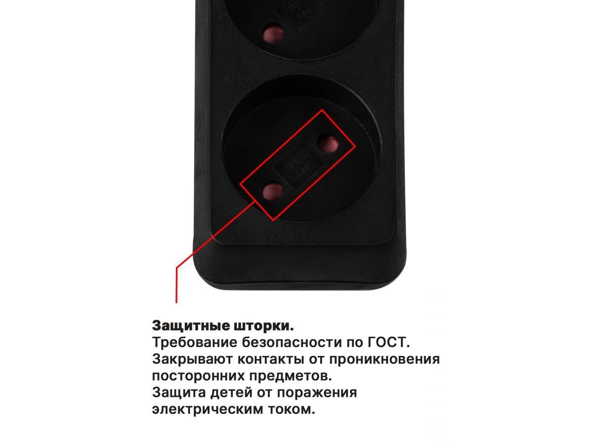 Защитные шторки открываются нажатием только на две одновременно, что обеспечивает надежную защиту от случайного прикосновения к токоведущим частям (защита детей).