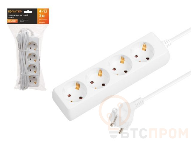 Удлинитель ЮПИТЕР изготовлен только из качественных материалов в соответствии с ГОСТ60884-1 и предназначен для подключения бытовых электрических приборов к электрической сети переменного тока внутри помещения.