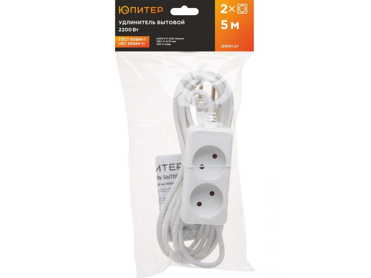 Удлинитель ЮПИТЕР изготовлен только из качественных материалов в соответствии с ГОСТ60884-1 и предназначен для подключения бытовых электрических приборов к электрической сети переменного тока внутри помещения.