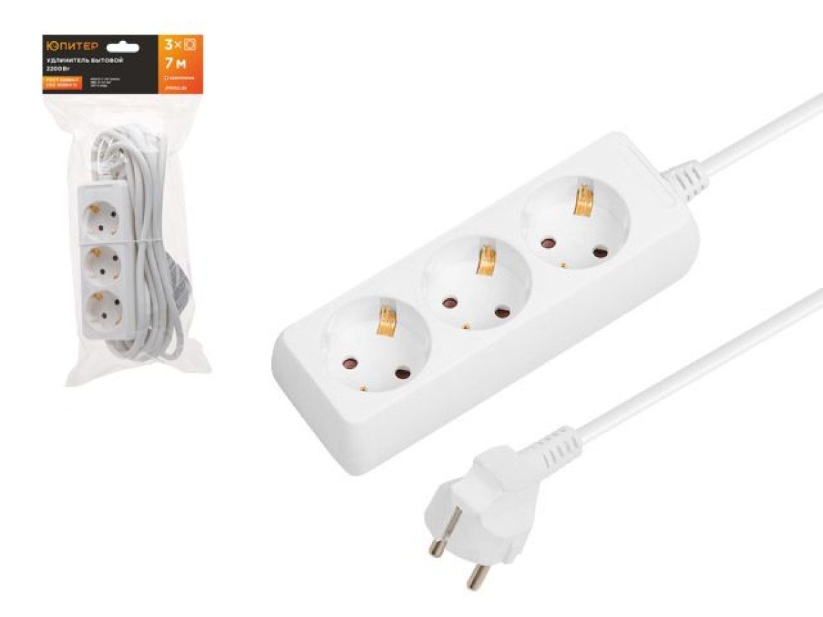 Удлинитель ЮПИТЕР изготовлен только из качественных материалов в соответствии с ГОСТ60884-1 и предназначен для подключения бытовых электрических приборов к электрической сети переменного тока внутри помещения.