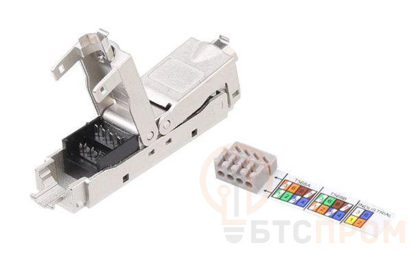Ключевая особенность — использование технологии смещения изоляции (IDC), позволяющей осуществить монтаж без зачистки и пайки, с помощью простого панчера. Конструкция адаптера включает металлический корпус и позолоченные контакты (50 микродюймов), обеспечивающие стабильное соединение и пропускную способность до 250 МГц. Это делает его идеальным для построения высокоскоростных сетей Gigabit Ethernet (1000BASE-T) и других приложений, требующих высокой целостности сигнала.
