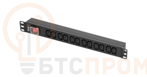 Блок электрических розеток 19дюйм 12 гнезд C13 макс. нагрузка 10А без шнура пит. вход С14 предохранитель 10А метал. корпус макс. мощность 2500Вт TLK TLK-RSA12-MTF-01-BK