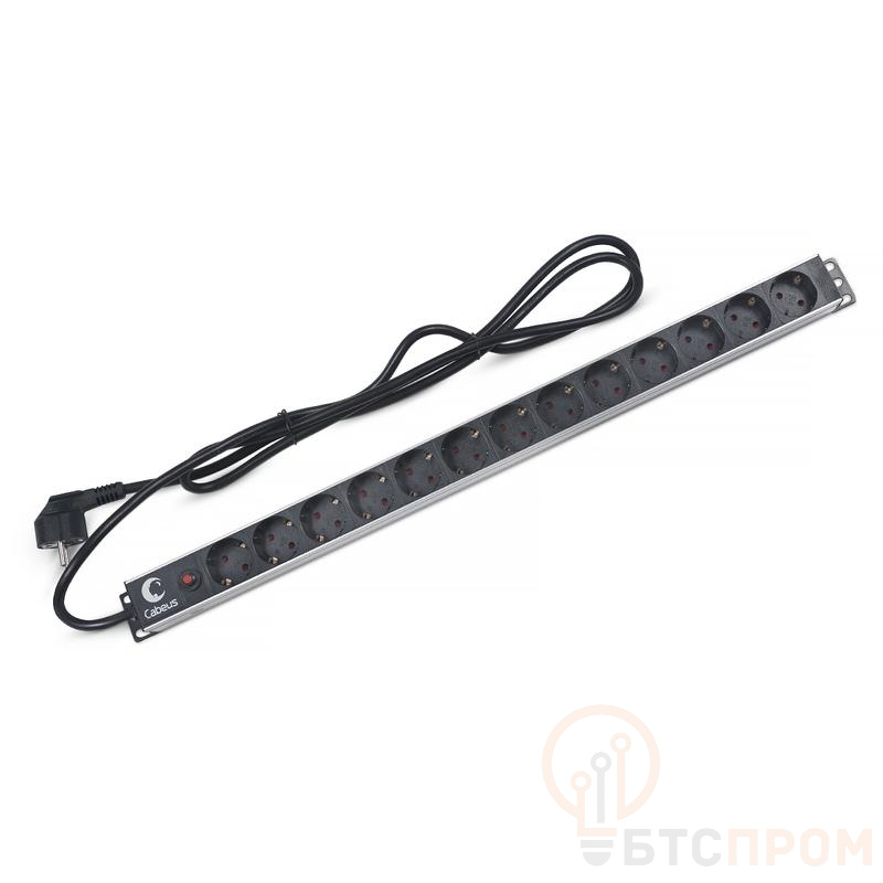 Блок евророзеток для 19дюйм шкафов PDU-13P-F-2EU 13 розеток фильтр 16А без выключателя шнур 2м алюм. корпус немецкий стандарт Cabeus 7294c