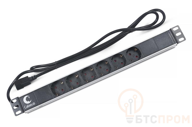 Блок евророзеток для 19дюйм шкафов PDU-6P-2IEC горизонт. 6 розеток 10А без выключателя алюм. корпус шнур 2м вилка IEC 320 C14 Cabeus 7289c