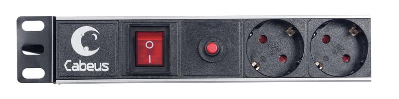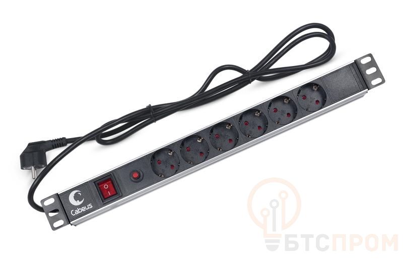 Блок евророзеток PDU-6P-F-2EU для 19дюйм шкафов горизонт. 6 розеток фильтр 16А выкл. шнур 2м алюм. корпус немецкий стандарт Cabeus 7296c