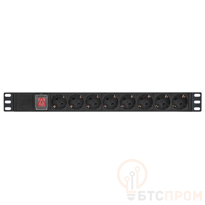 Блок PDU TERACOM PRO 19дюйм 1U 10А/250В 8 роз. Schuko с выключат. без шнура питания вх. разъем C14 корпус алюм. черн. EKF TRP-HPD-LS-10A-8SH-C14