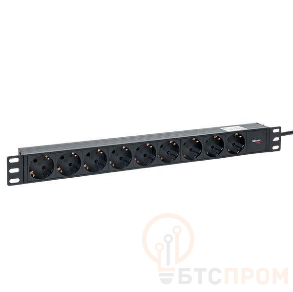 Блок PDU TERACOM PRO 19дюйм 1U 10А/250В 9 роз. Schuko шнур 2м 3х1.5кв.мм вилка C14 корпус пластик черн. EKF TRP-HPD-PL-10A-9SH-2MC14