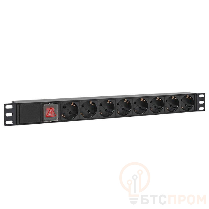 Блок PDU TERACOM PRO 19дюйм 1U 16А/250В 8 роз. Schuko с выключат. шнур 2м 3х1.5кв.мм вилка Schuko корпус алюм. черн. EKF TRP-HPD-LS-16A-8SH-2MSH