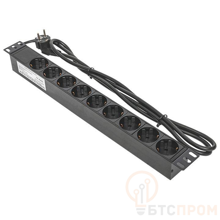 Блок PDU TERACOM PRO 19дюйм 1U 16А/250В 9 роз. Schuko шнур 2м 3х1.5кв.мм вилка Schuko корпус пластик черн. EKF TRP-HPD-PL-16A-9SH-2MSH