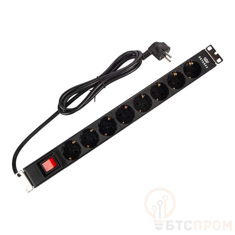 Блок распределения 19дюйм (PDU) с выключателем на 16А 8 разъемов SHUKO шнур питания 1.8 м черн. DATAREX DR-432121