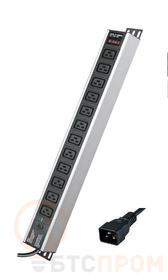 Блок распределения питания 12-м 16А C19 для 19дюйм шкафов вертикал. с индикатором сети защита от перенапряж. вх. DKC R5V12PIOPCDC19