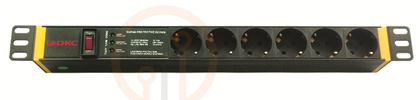 Блок распределения питания 6-м 16А Schuko вх. разъем Schuko для 19дюйм шкафов защита от перенапряж. с индикатором сети DKC R519SH6OPSHSP