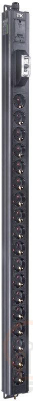 Вертикальный однотипный блок распределения питания PDU ITK включает в себя 18 розеток Schuko. PDU ITK изготавливается из высококачественных термостойких материалов и пластмасс, оснащается 2,6 метровым кабелем электропитания с вилкой Schuko. PDU ITK прекрасно справляется с задачей по электроснабжению сетевого оборудования в шкафах и стойках, а также с требованием защиты от токов короткого замыкания и перенапряжения. PDU ITK соответствует российским и международным стандартам качества и устанавливается с помощью кронштейнов, при этом положение кронштейнов можно менять, либо безынструментальным методом при помощи монтажных штифтов.