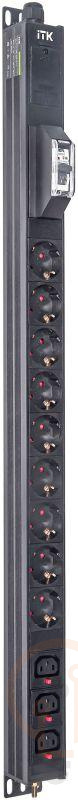 Вертикальный комбинированный блок распределения питания PDU ITK включает в себя розетки двух типов: 9 розеток Schuko и 3 розетки C13 – что позволяет подключать с их помощью различное оборудование. PDU ITK изготавливается из высококачественных термостойких материалов и пластмасс, оснащается 2,6 метровым кабелем электропитания с вилкой Schuko. PDU ITK прекрасно справляется с задачей по электроснабжению сетевого оборудования в шкафах и стойках, а также с требованием защиты от токов короткого замыкания и перенапряжения. PDU ITK соответствует российским и международным стандартам качества и устанавливается с помощью кронштейнов, при этом положение кронштейнов можно менять, либо безынструментальным методом при помощи монтажных штифтов.