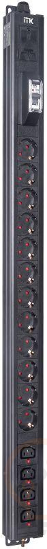 Вертикальный комбинированный блок распределения питания PDU ITK включает в себя розетки двух типов: 12 розеток Schuko и 4 розетки C13 – что позволяет подключать с их помощью различное оборудование. PDU ITK изготавливается из высококачественных термостойких материалов и пластмасс, оснащается 2,6 метровым кабелем электропитания с вилкой Schuko. PDU ITK прекрасно справляется с задачей по электроснабжению сетевого оборудования в шкафах и стойках, а также с требованием защиты от токов короткого замыкания и перенапряжения. PDU ITK соответствует российским и международным стандартам качества и устанавливается с помощью кронштейнов, при этом положение кронштейнов можно менять, либо безынструментальным методом при помощи монтажных штифтов.