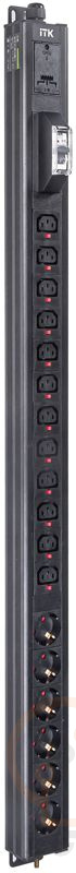 Вертикальный комбинированный блок распределения питания PDU ITK включает в себя розетки двух типов: 6 розеток Schuko и 12 розеток C13 – что позволяет подключать с их помощью различное оборудование. PDU ITK изготавливается из высококачественных термостойких материалов и пластмасс, оснащается 3-х метровым кабелем электропитания с вилкой промышленного назначения IEC60309. PDU ITK прекрасно справляется с задачей по электроснабжению сетевого оборудования в шкафах и стойках, а также с требованием защиты от токов короткого замыкания и перенапряжения. PDU ITK соответствует российским и международным стандартам качества и устанавливается с помощью кронштейнов, при этом положение кронштейнов можно менять, либо безынструментальным методом при помощи монтажных штифтов.