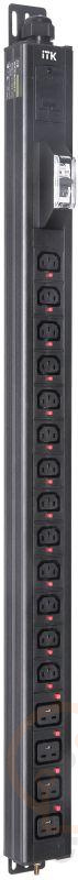 Вертикальный комбинированный блок распределения питания PDU ITK включает в себя розетки двух типов: 13 розеток C13 и 4 розетки C19 – что позволяет подключать с их помощью различное оборудование. PDU ITK изготавливается из высококачественных термостойких материалов и пластмасс, оснащается 3-х метровым кабелем электропитания с вилкой промышленного назначения IEC60309. PDU ITK прекрасно справляется с задачей по электроснабжению сетевого оборудования в шкафах и стойках, а также с требованием защиты от токов короткого замыкания и перенапряжения. PDU ITK соответствует российским и международным стандартам качества и устанавливается с помощью кронштейнов, при этом положение кронштейнов можно менять, либо безынструментальным методом при помощи монтажных штифтов.