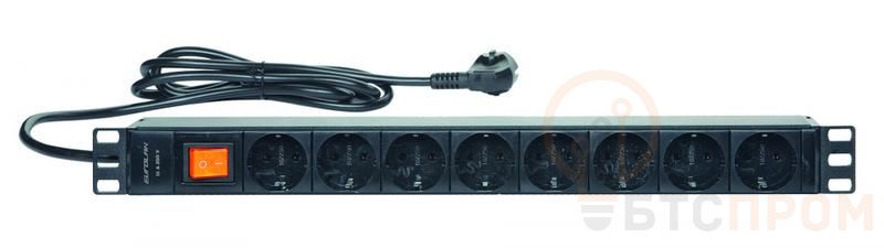 Блок распределения питания базовый 19дюйм 1U 16/230 8 Schuko Schuko шнур 1.8м выключатель Eurolan 60A-61-01-08BL