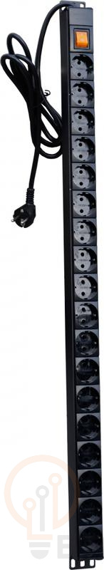 Блок распределения питания базовый вертик. 16/230 18 Schuko шнур 3м выключатель Eurolan 60A-62-01-18BL