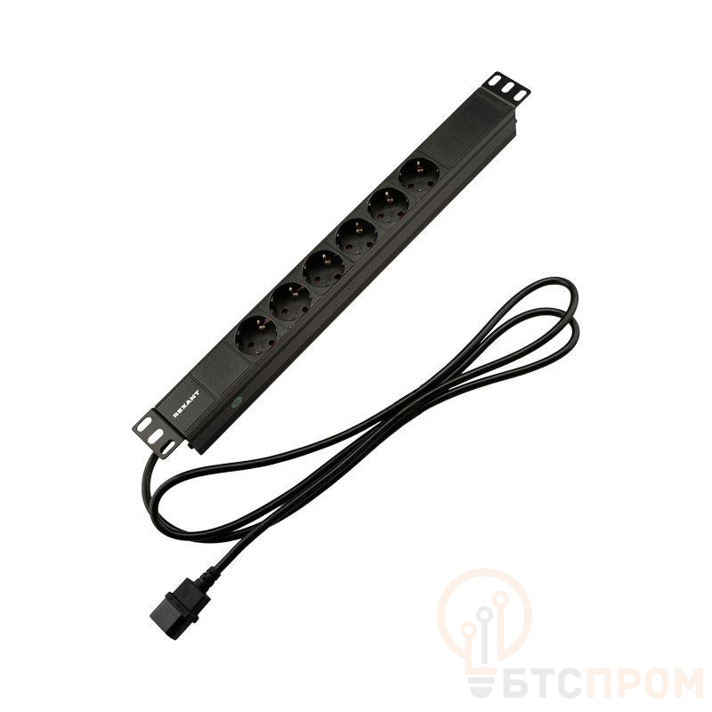 Блок распределения питания для 19дюйм шкафов; горизонт.; 6 розеток СЕЕ 7/4; 10А; без выключателя; вилка C14; шнур 2м; корпус алюм. Rexant 04-0301-1