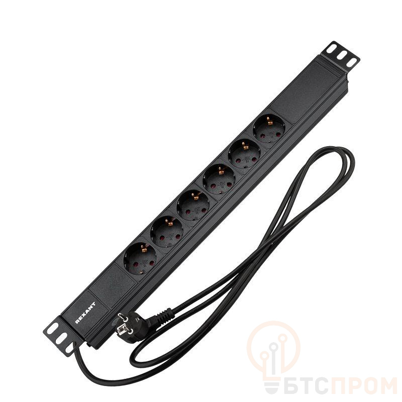 Блок распределения питания для 19дюйм шкафов; горизонт.; 6 розеток СЕЕ 7/4; 16А; без выключателя; вилка СЕЕ 7/7; шнур 2м; корпус алюм. Rexant 04-0101-1