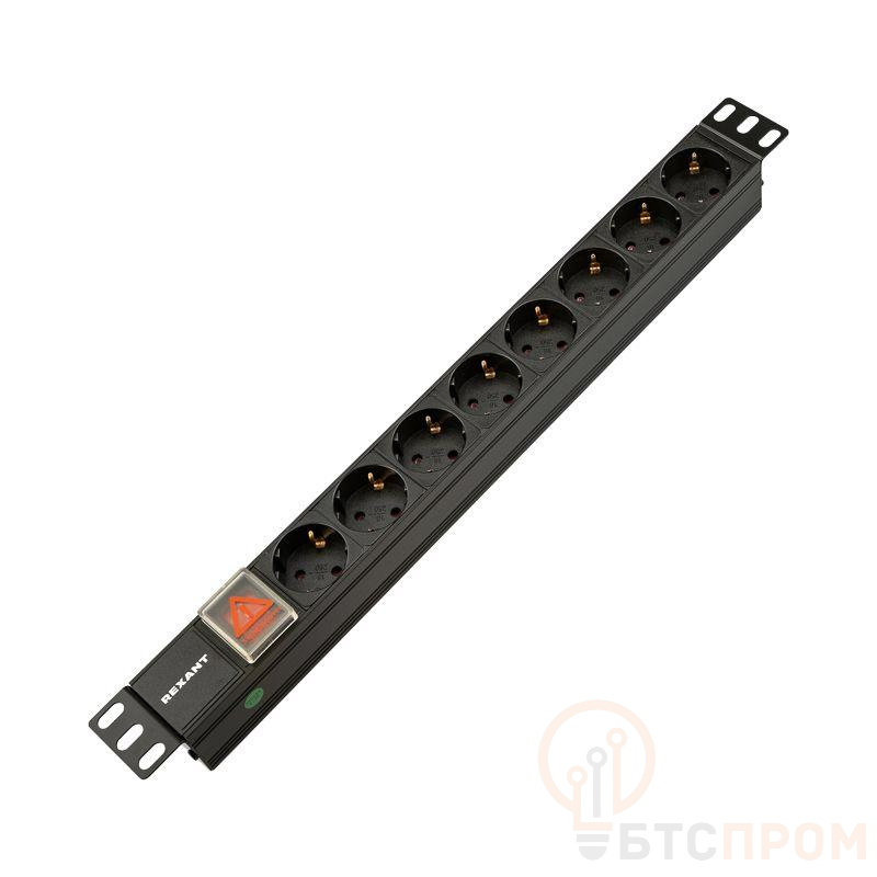 Блок распределения питания для 19дюйм шкафов; горизонт.; 8 розеток СЕЕ 7/4; 10А; выключатель; гнездо C14; корпус алюм. Rexant 04-0303-1