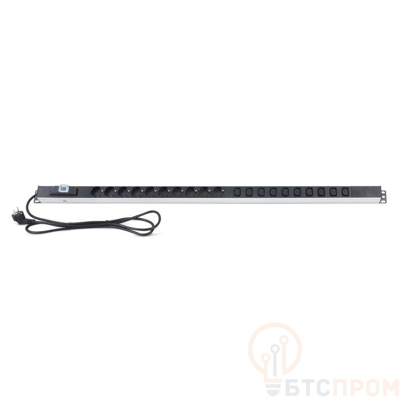 Блок распределения питания для 19дюйм шкафов; вертикал.; 10 розеток СЕЕ 7/4; 10 розеток C13; 16А; автомат защиты; вилка СЕЕ 7/7; шнур 2м; корпус алюм. Rexant 04-0202-2