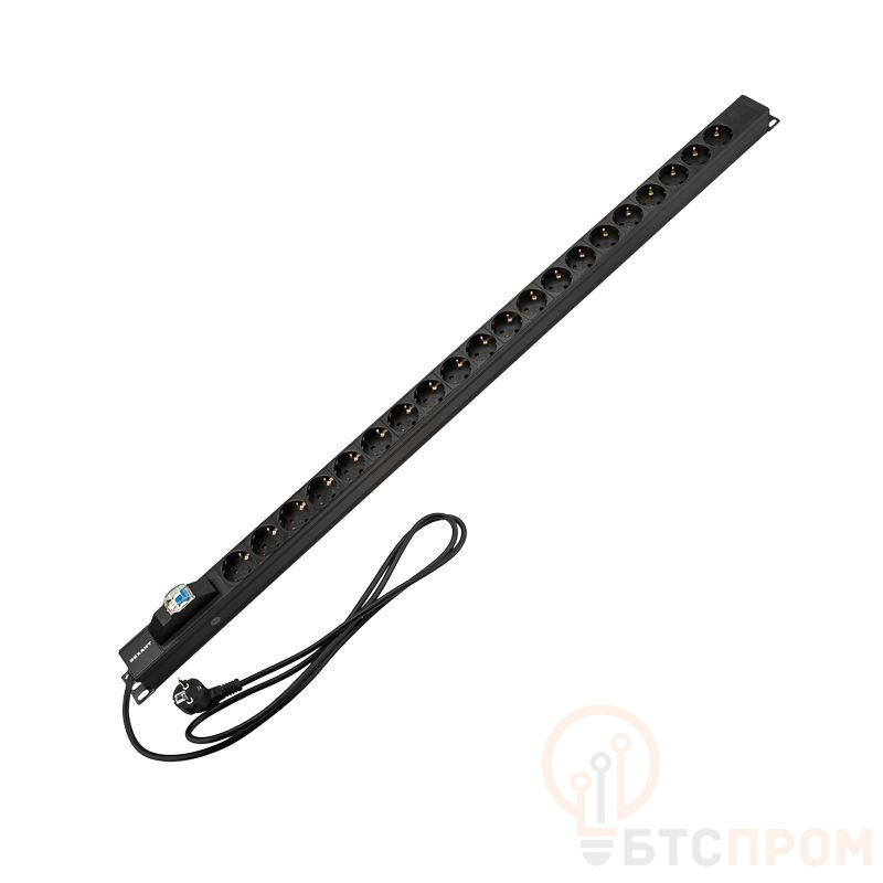 Блок распределения питания для 19дюйм шкафов; вертикал.; 20 розеток СЕЕ 7/4; 16А; автомат защиты; вилка СЕЕ 7/7; шнур 2м; корпус алюм. Rexant 04-0201-2