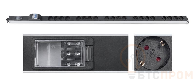Блок розеток 20-м PDU-16-20S-B-T 16А вертикал. для 19дюйм шкафов Schuko автомат защиты клеммная колодка алюм. Cabeus 9548c