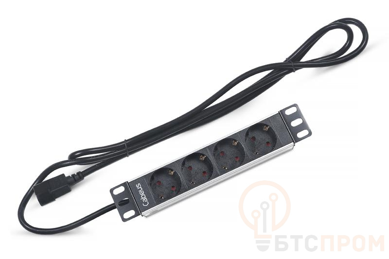 Блок розеток 4-м PDU-4P-2IEC 10А евростандарт вилка IEC 320 C14 для 10дюйм шкафов горизонт. без выкл. алюм. корпус шнур 2м Cabeus 7293c