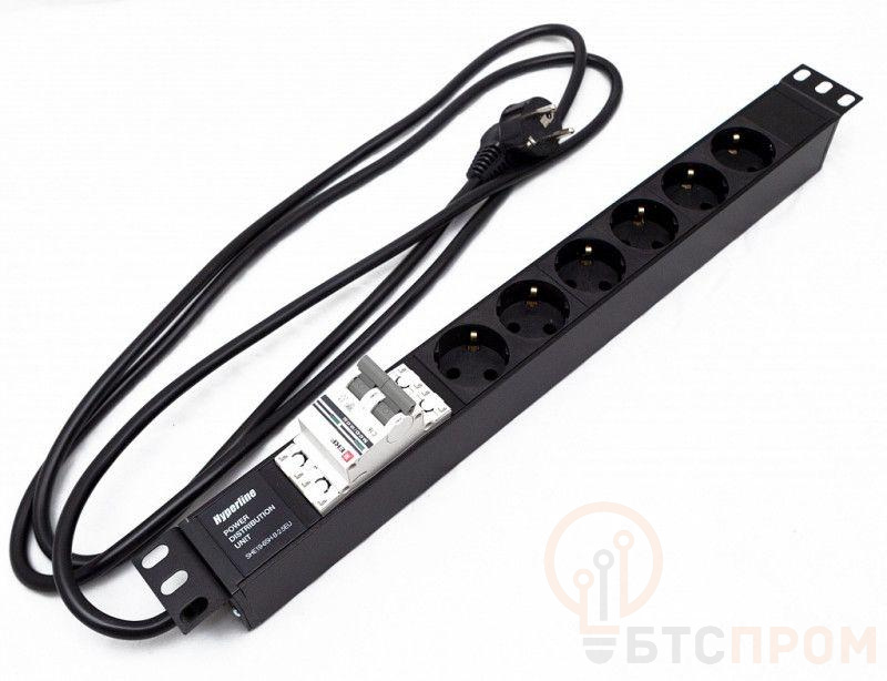 Блок розеток 6-м 16А SHE19-6SH-B-2.5EU 2п 250В 3х1.5кв.мм 482.6х44.4х44.4 для 19дюйм горизонт. с автомат. выкл. шнур 2.5м Hyperline 397028