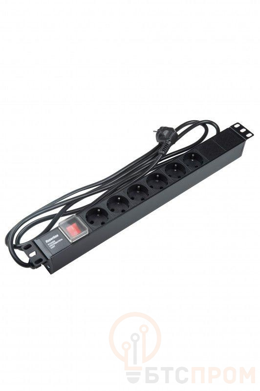 Блок розеток 6-м 16А SHE19-6SH-S-2.5EU Schuko горизонт. с выкл. шнур 2.5м Hyperline 397030 фото в каталоге от BTSprom.by