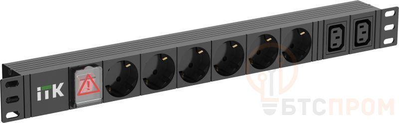 Горизонтальный комбинированный 19" PDU ITK включает в себя розетки двух типов: 6 розеток Schuko и 2 розетки C13 – что позволяет подключать с их помощью различное оборудование. PDU ITK изготавливается из высококачественных термостойких материалов и пластмасс, оснащается выключателем со световой индикацией и 2-х метровым кабелем электропитания с вилкой Schuko. PDU ITK прекрасно справляется с задачей по электроснабжению сетевого оборудования в шкафах и стойках, а также с требованием защиты от токов короткого замыкания и перенапряжения. PDU ITK соответствуют российским и международным стандартам качества, а также стандарту 19" (482,6 мм) и устанавливается с помощью кронштейнов на 19" профиль, при этом положение кронштейнов можно менять.
